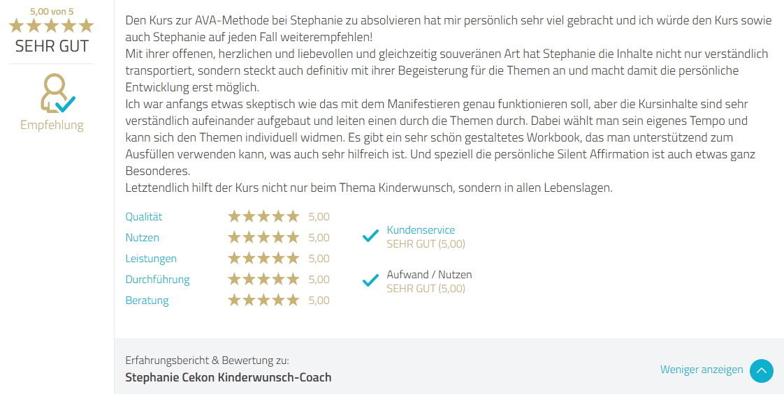 Nach dem schmerzvollen Verlust ihrer Tochter und einer langen Kinderwunschreise kennt Stephanie die Herausforderungen eines unerfüllten Kinderwunsches aus eigener Erfahrung. Mit der AVA-Methode hat sie einen Weg gefunden, Ängste loszulassen, Blockaden zu lösen und den Körper auf natürliche Weise zu unterstützen.